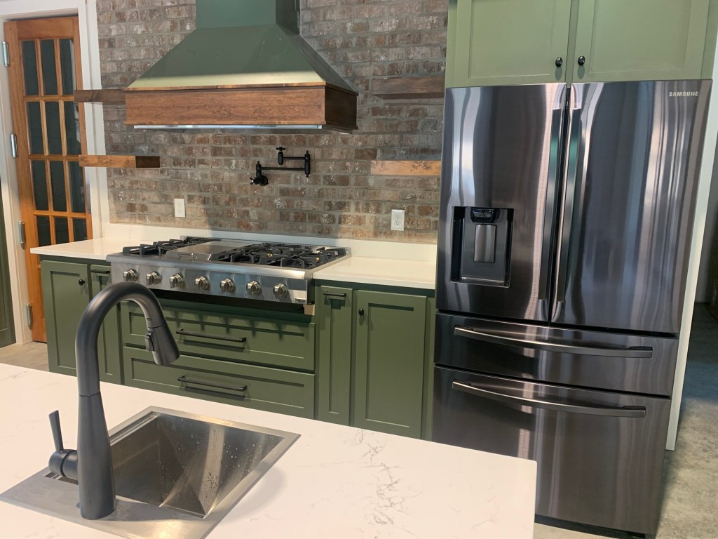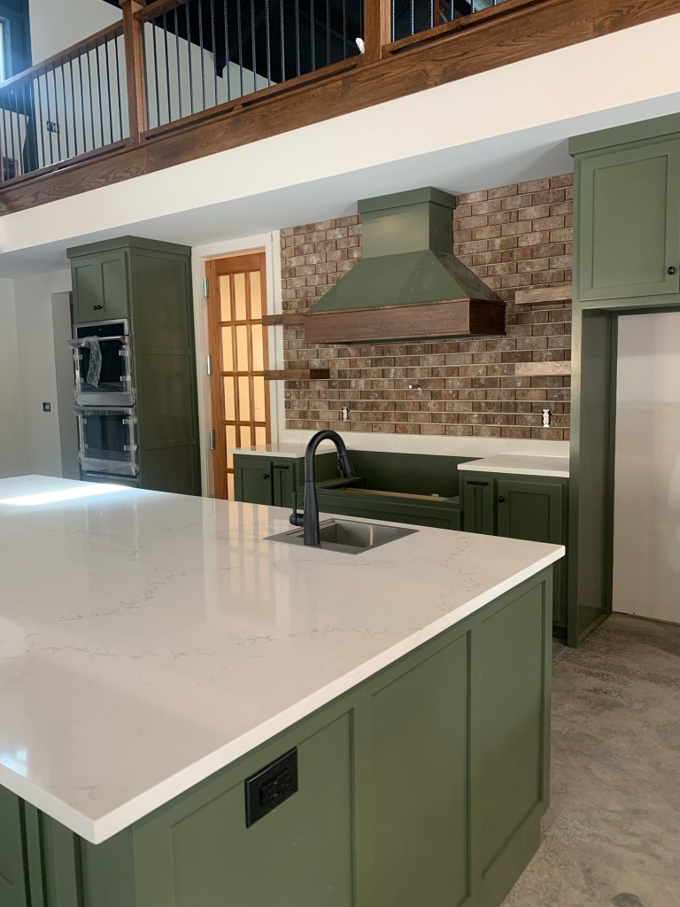 In April the garage door to the porch was installed. Shortly after, our beautiful custom cabinets and countertops went in, appliances were installed, and the whole interior was painted by subs who worked hard and finished quickly.